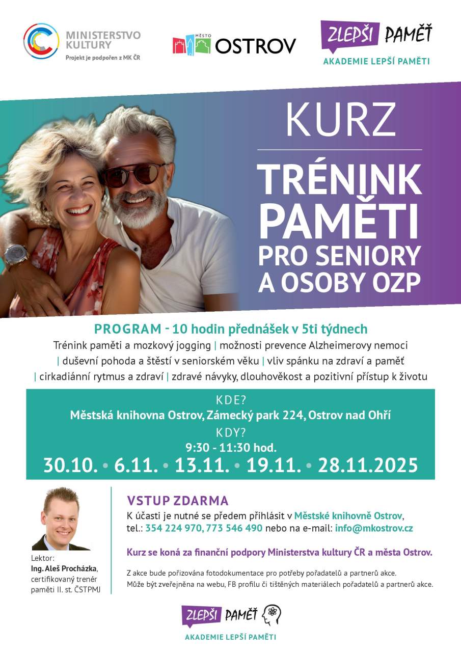 Akademie lepší paměti "Zlepši paměť" pořádá kurz tréninku paměti pro seniory ve městě Ostrov nad Ohří